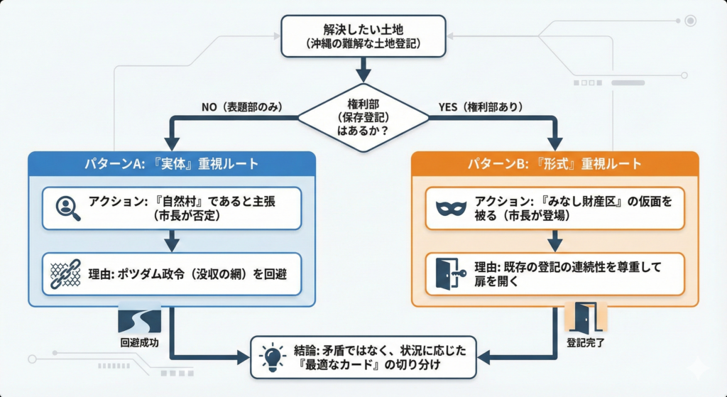 1. 沖縄実務の「楽なルート」:幻の財産区への更正