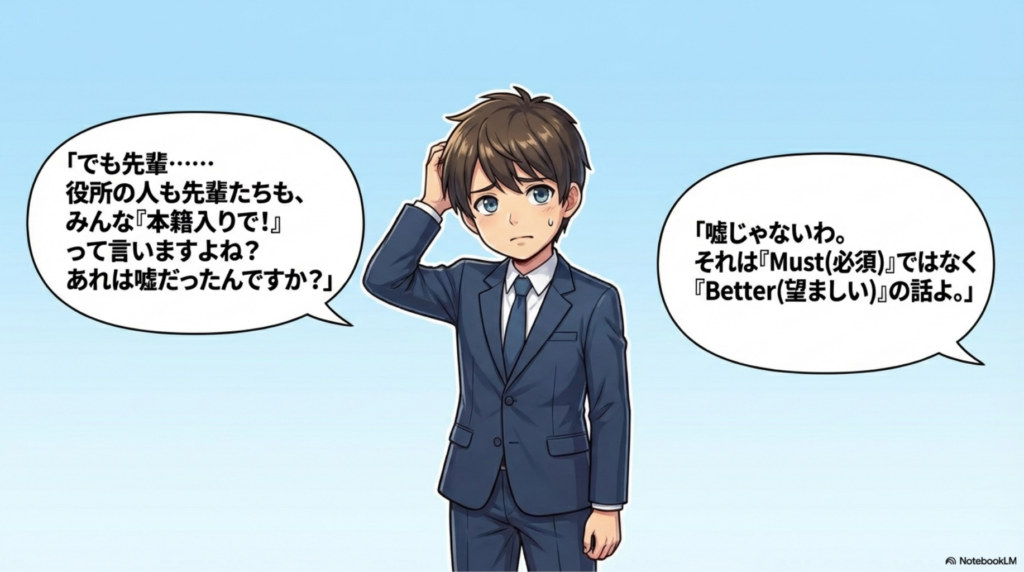 つまり、「本籍入りが望ましい(Better)」ではありますが、「本籍入りでなければならない(Must)」ではないのです。