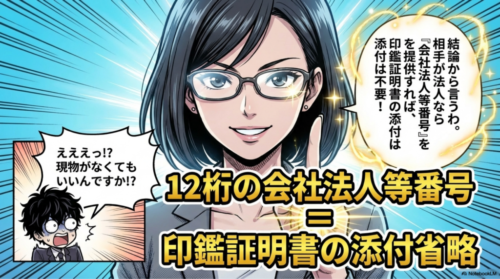 結論:12桁の「会社法人等番号」があれば、印鑑証明書は添付不要!