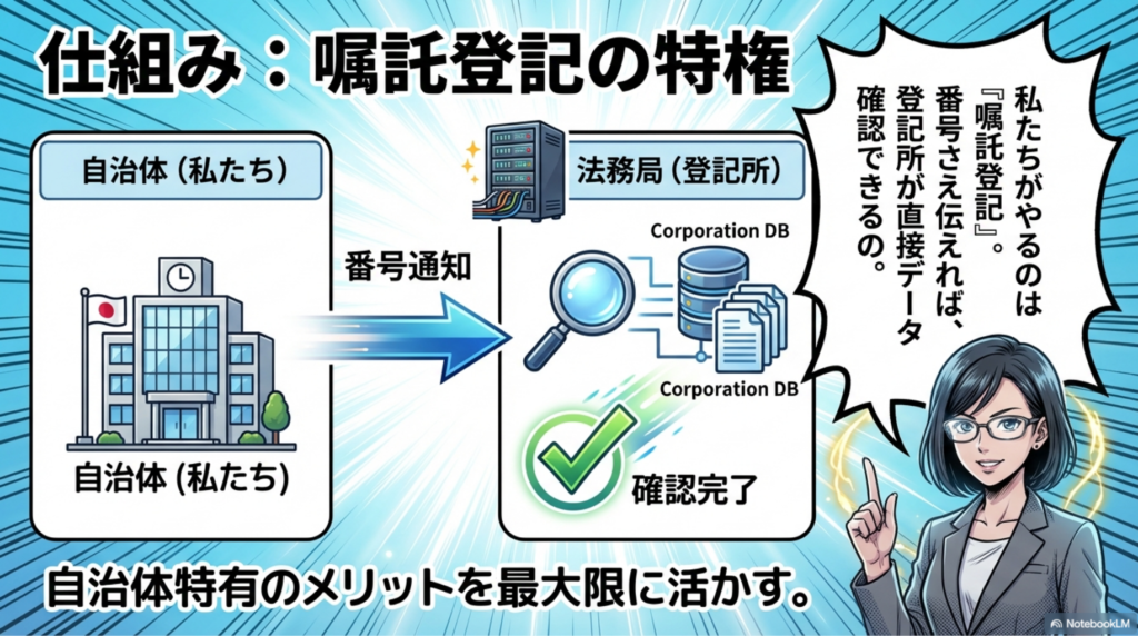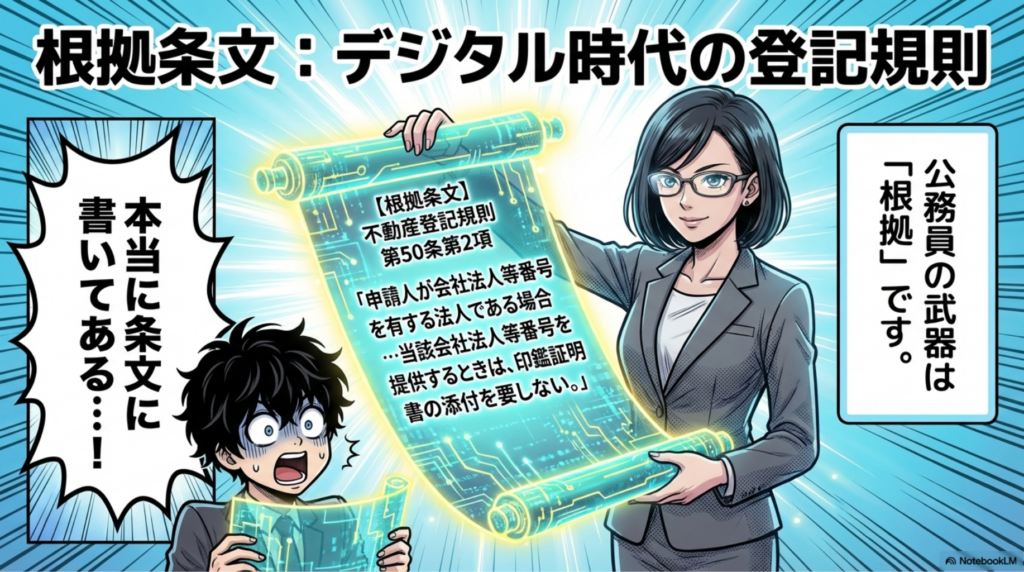 結論から言います。 嘱託登記(私たち自治体が行う登記)において、登記義務者(売主である法人や、抵当権者である銀行など)が法人の場合、「会社法人等番号」を登記所に提供すれば、その法人の印鑑証明書の添付は省略できます。