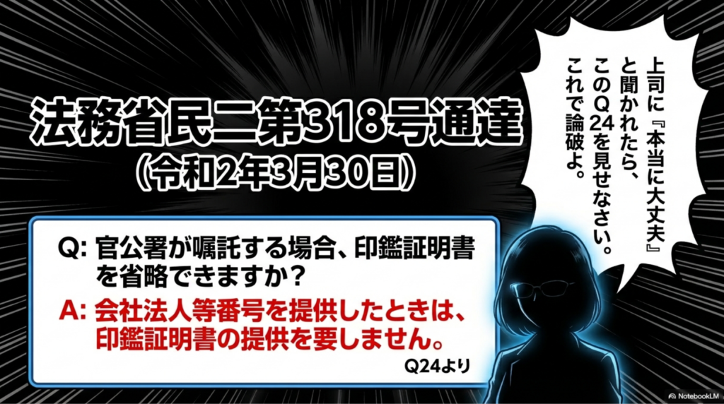 これでもう、「規則50条2項と令和2年の318号通達Q24に基づき省略しています」と自信を持って答えられますね。