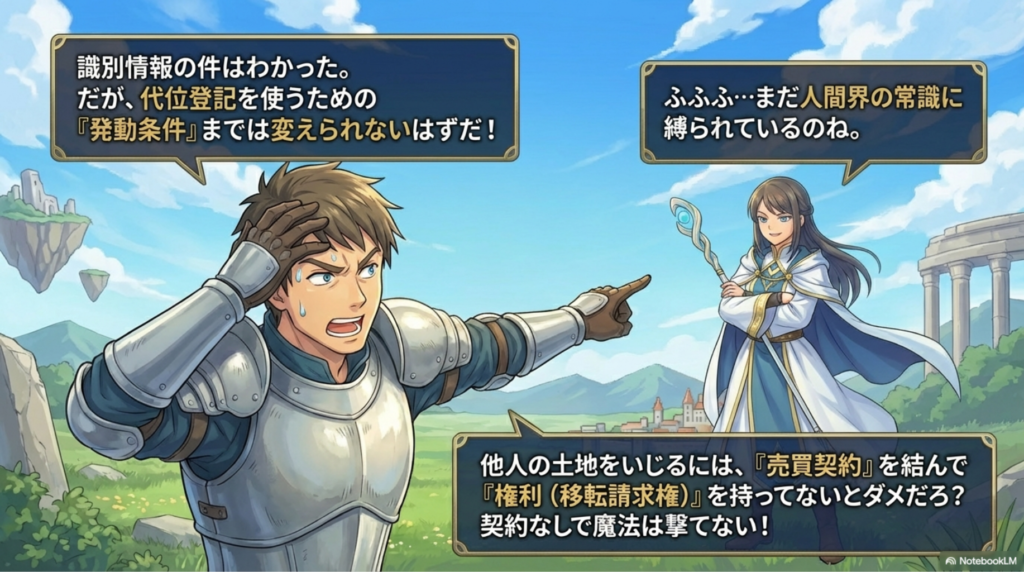 - 面的な整備事業(土地改良法・土地区画整理法):→ 特別法の特例あり。代位登記でも識別情報は来る場合がある。