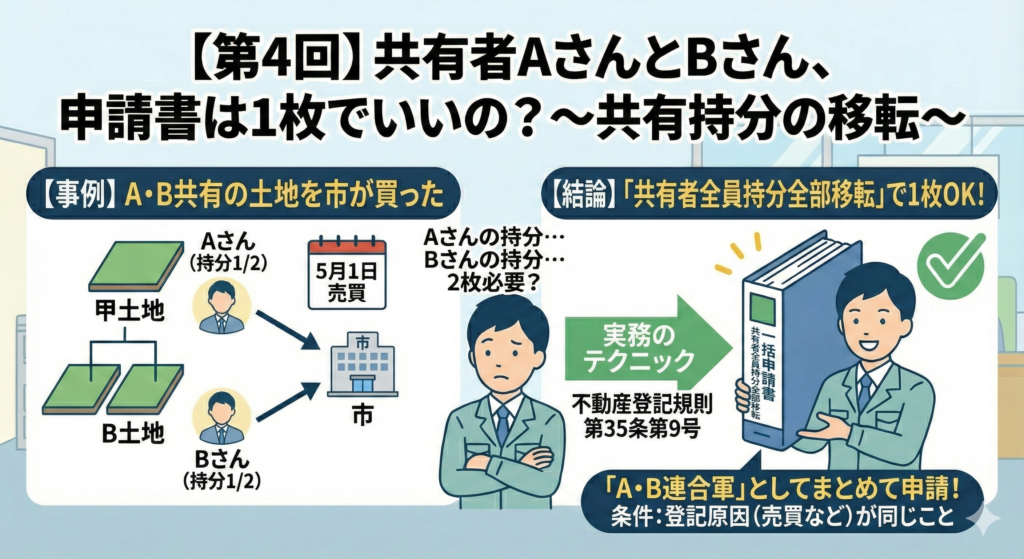 【第4回】共有者AさんとBさん、申請書は1枚でいいの?~共有持分の移転~