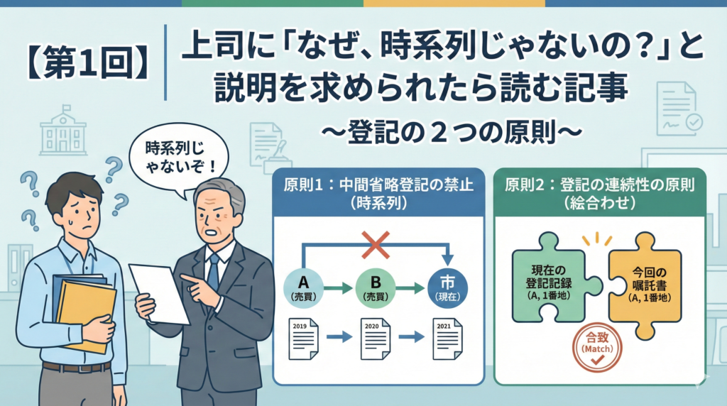 【第1回】上司に「なぜ、時系列じゃないの?」と説明を求められたら読む記事~登記の2つの原則~