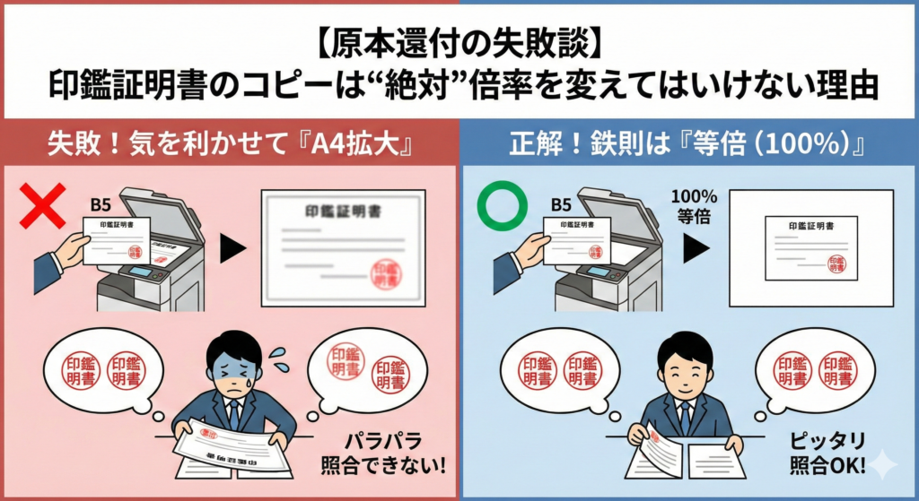 【原本還付の失敗談】「気を利かせてA4に拡大コピー」が命取り! 印鑑証明書のコピーには“絶対”倍率を変えてはいけない理由