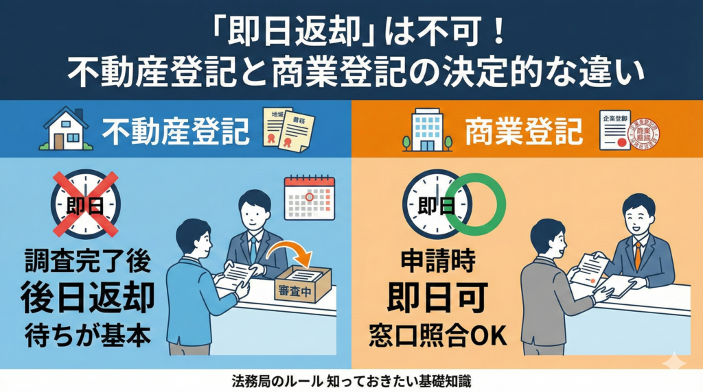 「即日返却」は不可! 不動産登記と商業登記の決定的な違い