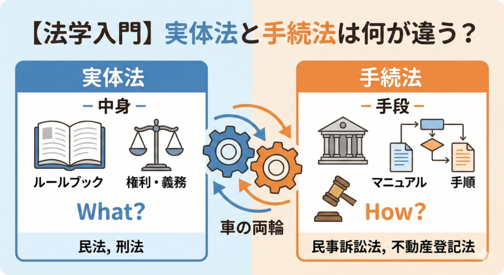 【法学入門】「実体法」と「手続法」は何が違う? 初心者でも5分でわかる基礎知識