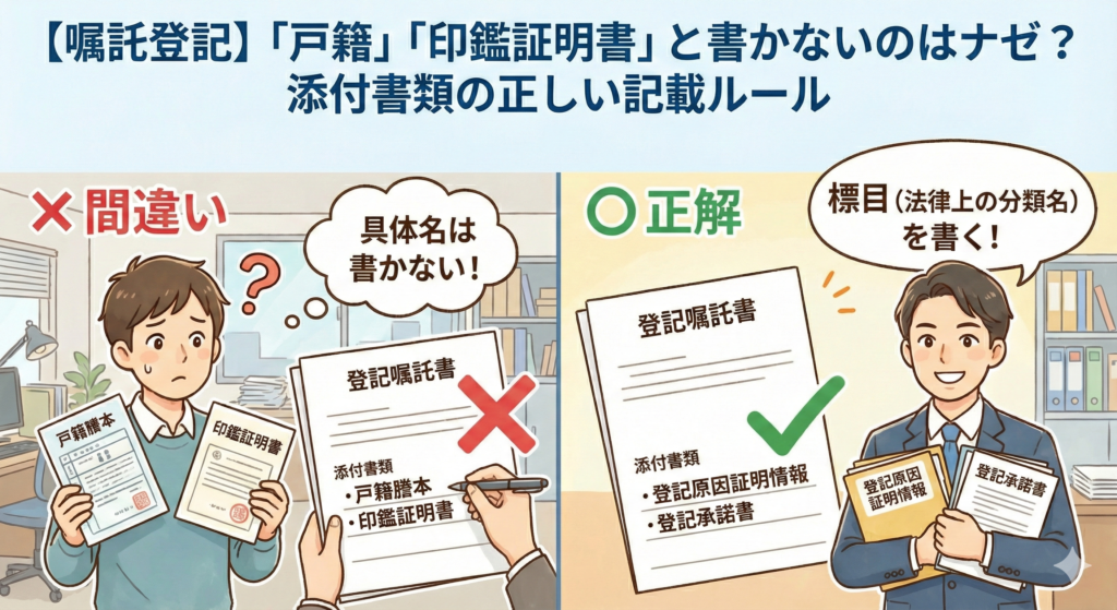 【嘱託登記】「戸籍」「印鑑証明書」と書かないのはナゼ? 添付書類の正しい記載ルール