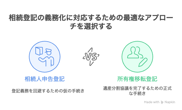 - 何ができる?: 遺産分割がまとまっていなくても、「私は相続人の一人です」と法務局に申し出るだけで、登記義務(過料のリスク)を回避できる。