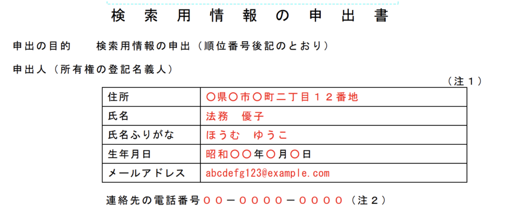 第2 検索用情報を申請情報の内容とする方法(検索用情報同時申出)