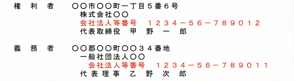 - 「権利者欄」への番号記載は、登記簿に載せるため(2024年~)。
