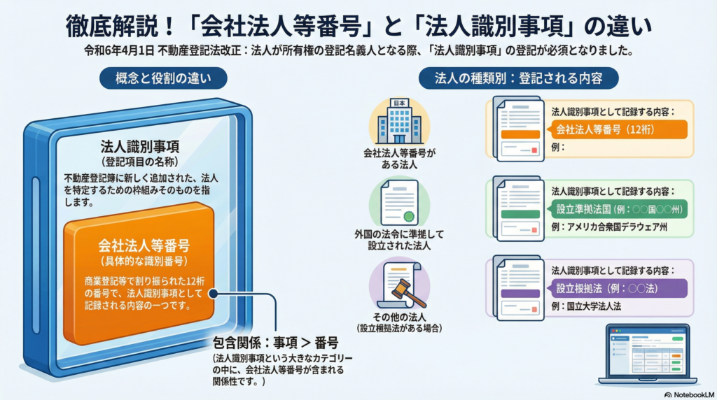 1. 「法人識別事項」と「会社法人等番号」の違い