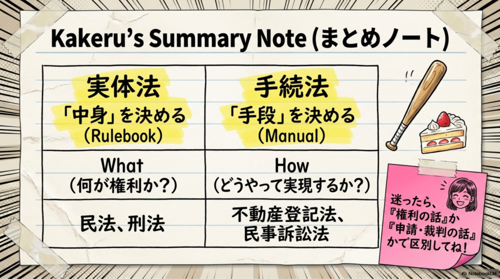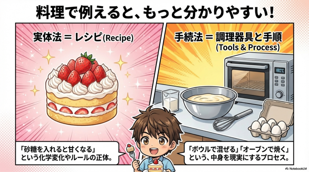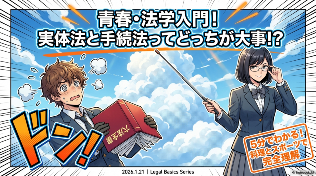 法律の勉強を始めると、最初にぶつかる壁の一つが「実体法(じったいほう)」と「手続法(てつづきほう)」という言葉です。